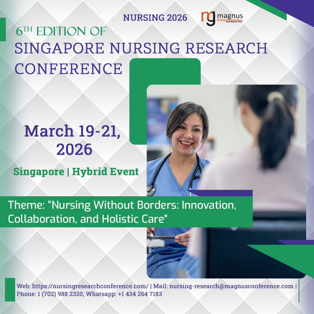 The 6th Edition of Singapore Nursing Research Conference (Nursing 2026), scheduled for March 19–21, 2026, in Singapore and online, will highlight the theme Nursing Without Borders: Innovation, Collaboration, and Holistic Care. This conference serves as a key forum for nursing professionals, healthcare administrators, and researchers to discuss emerging trends and innovations in nursing practice and education.