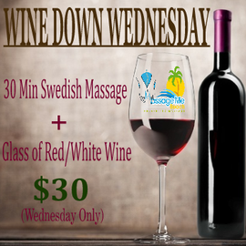 Enjoy a glass of wine with a 30 minute relaxation massage on Wednesday.