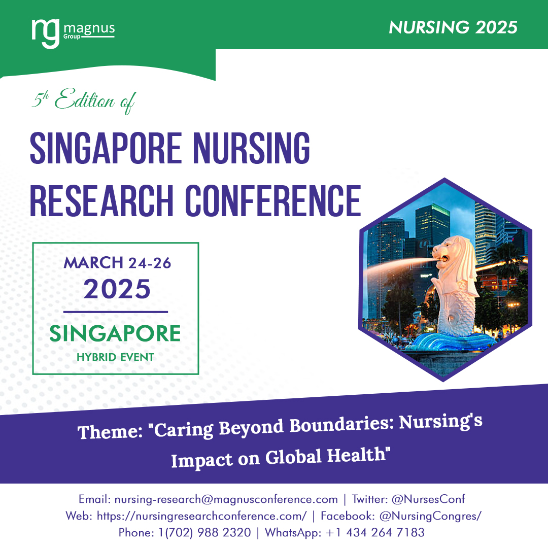 We are thrilled to extend our heartfelt invitation to the 5th Edition of Singapore Nursing Research Conference, scheduled to take place in the vibrant city of Singapore from March 24 to 26, 2025. This highly anticipated event offers a hybrid experience, allowing participants to join either in person or virtually, ensuring inclusivity and collaboration on a global scale. Under the overarching theme of "Caring Beyond Boundaries: Nursing’s Impact on Global Health" this Healthcare Symposium Singapore aims to ignite discussions and inspire breakthroughs in the field of nursing.