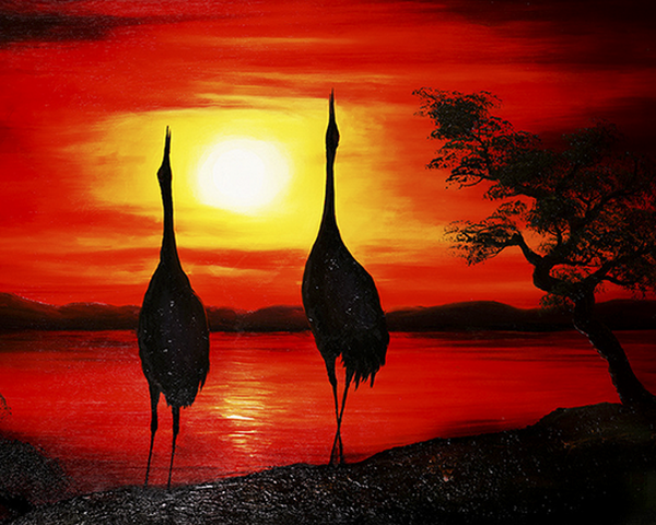 CRANE SILHOUTTE SUNSET - PAINT PARTY