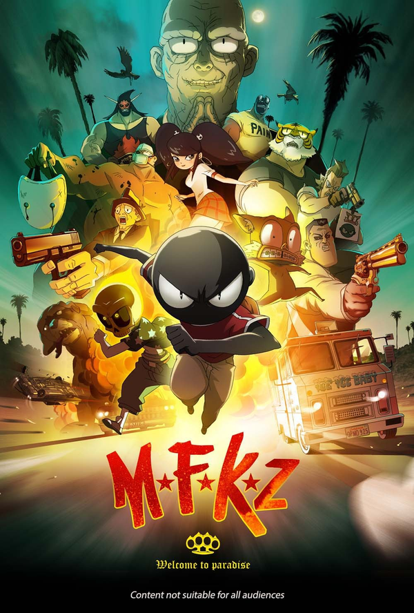 Genre-mashup MFKZ is the collaboration of French comic artist Guillaume “Run” Renard and ultra-hip Japanese animation house Studio 4°C, creators of Tekkonkinkreet, Genius Party and Mind Game. The Tekkonkinkreet dream team of Shojiro Nishimi and art director Shinji Kimura reunite to bring to life a dark but stunningly animated sci-fi vision that mixes anime, film noir, and Lucha Libre in an orgy of video game-inspired mayhem.